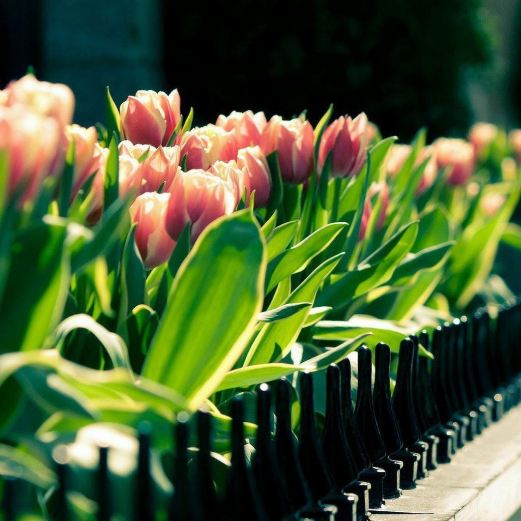 Обои Розовые тюльпаны в горшке на балконе