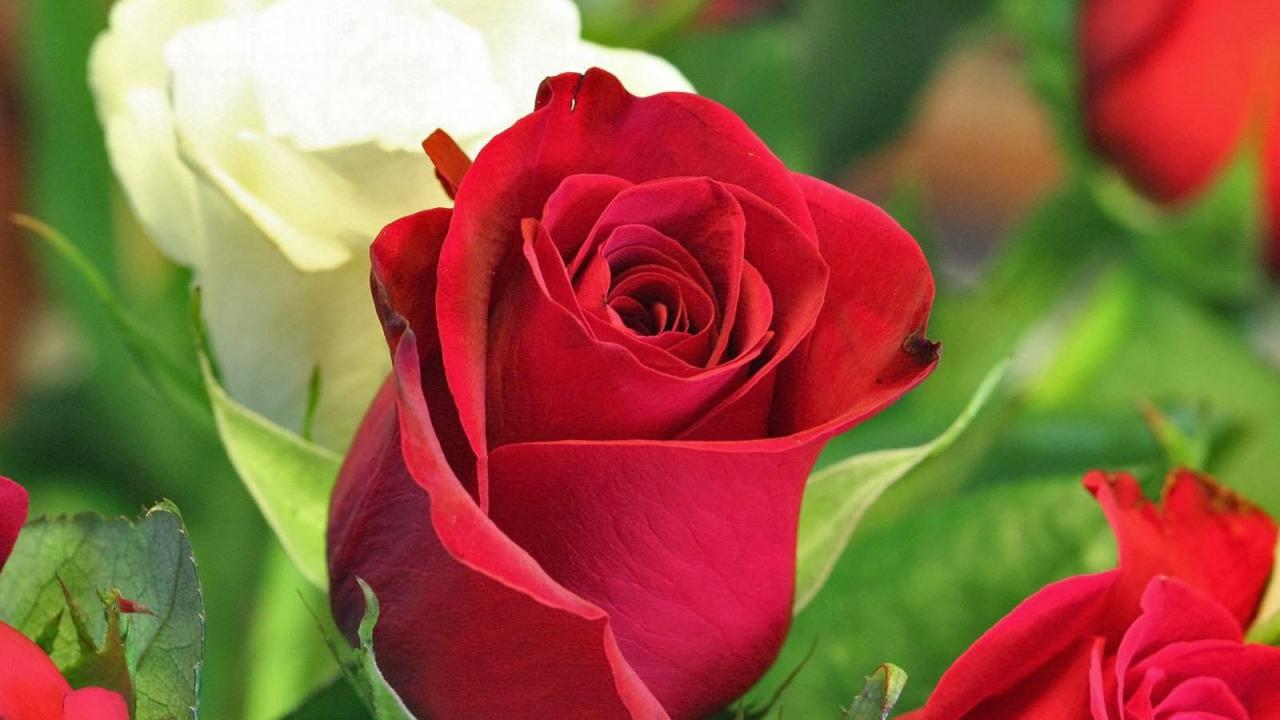Обои Красная и белая роза