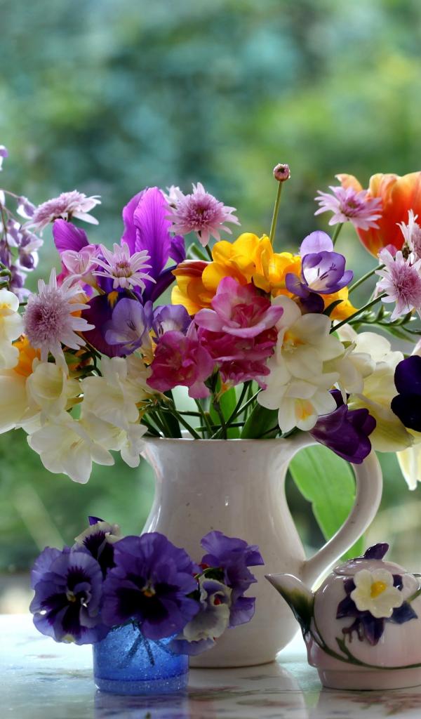 » Обои Букеты цветов на подоконнике