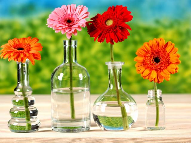 » Обои Хризантемы в бутылках