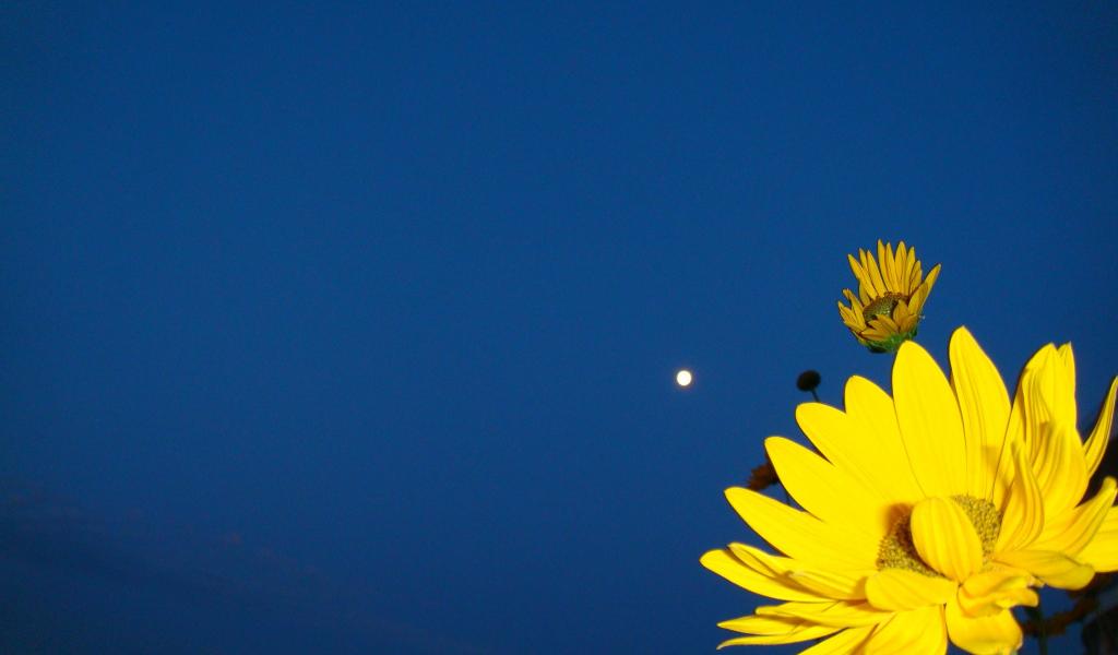 » Обои Желтый цветок на синем фоне