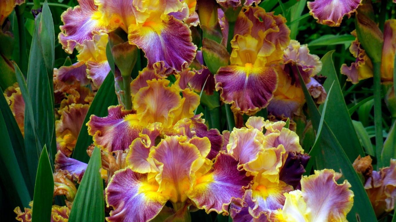 Обои Ирисы на клумбе