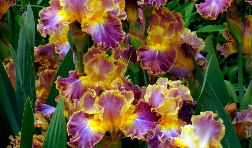 Обои Ирисы среди зелени