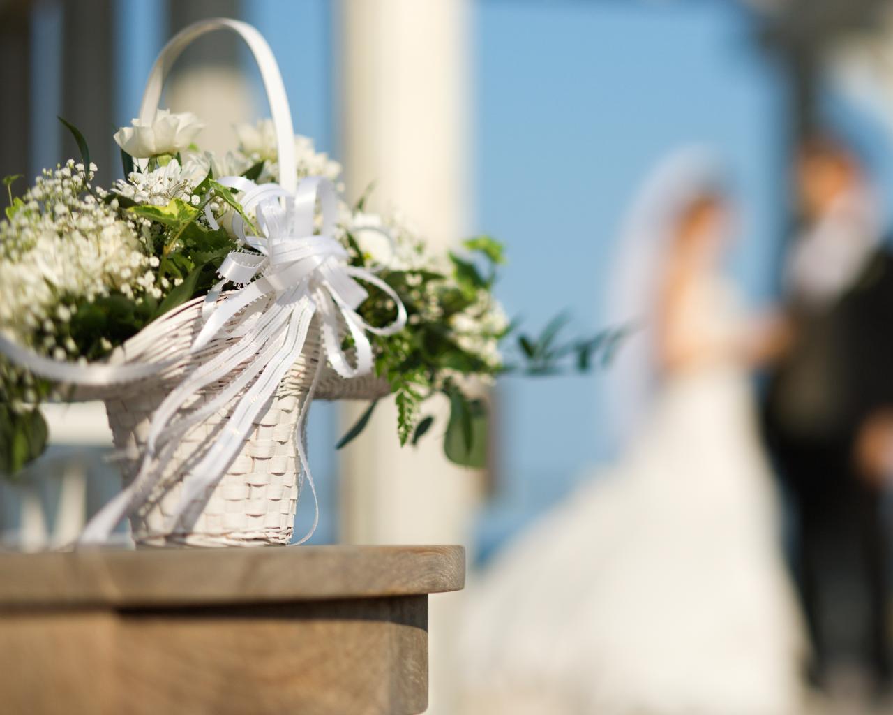 Обои Свадебный букет в белой корзине