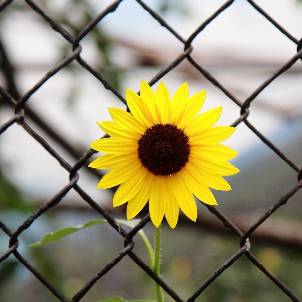 Обои Подсолнух за сеткой