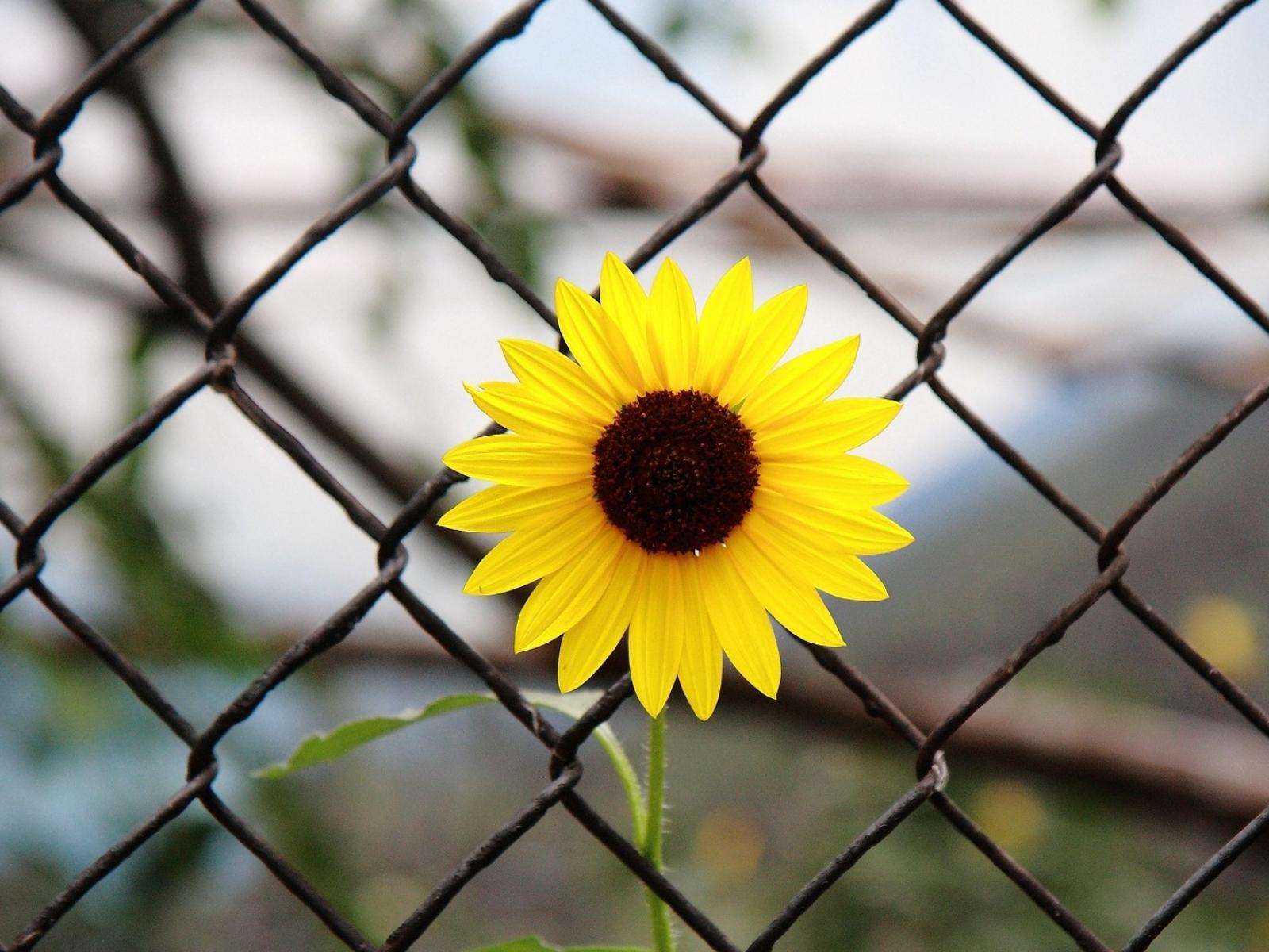 Обои Подсолнух за сеткой