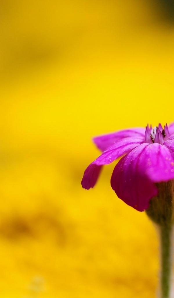Обои Фиолетовый цветок на жёлтом