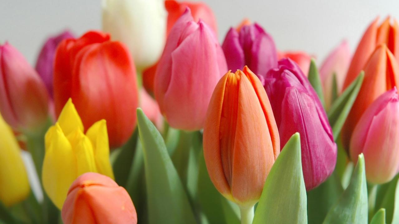 Обои Разноцветные тюльпаны девушке на восьмое марта
