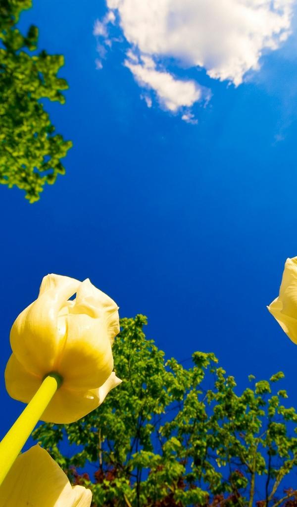 Обои Желтые бутоны на фоне неба