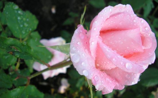Обои Нежная роза в каплях росы