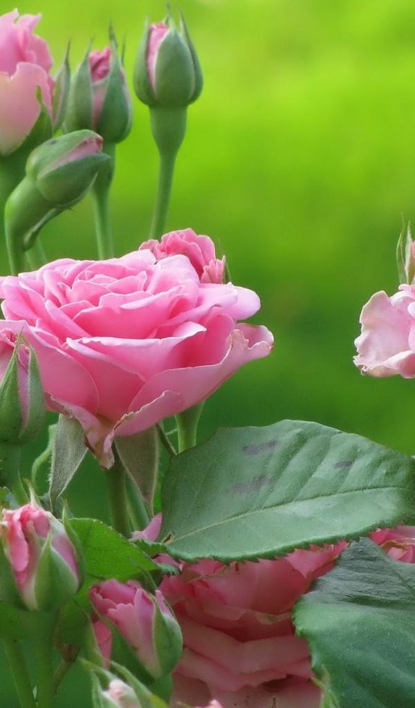 Обои Нежные розы на зеленом фоне