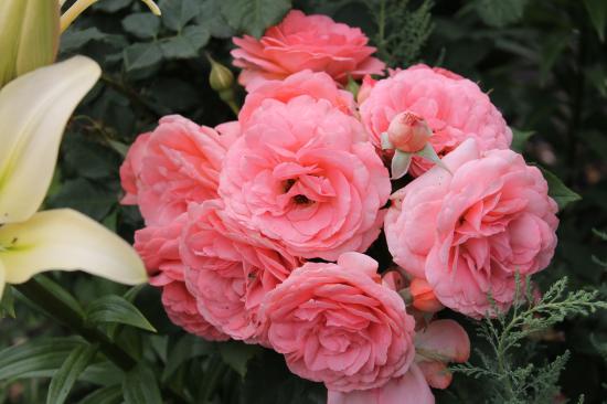 Обои Красивая роза кустарниковая на дачном участке
