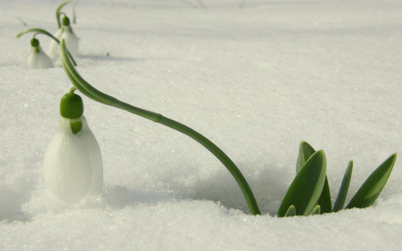 Обои Красивый подснежник в снегу