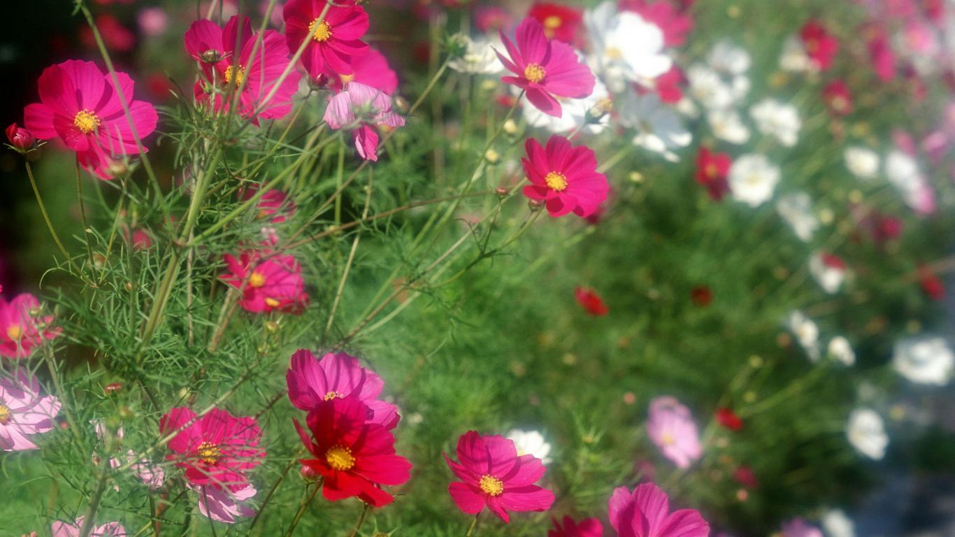 Обои Красивые цветы космея в саду