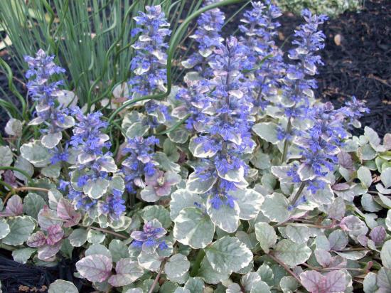 Обои Красивые цветы аюга на клумбе в саду