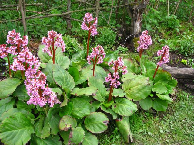 Обои Красивые цветы растения бадан в парке