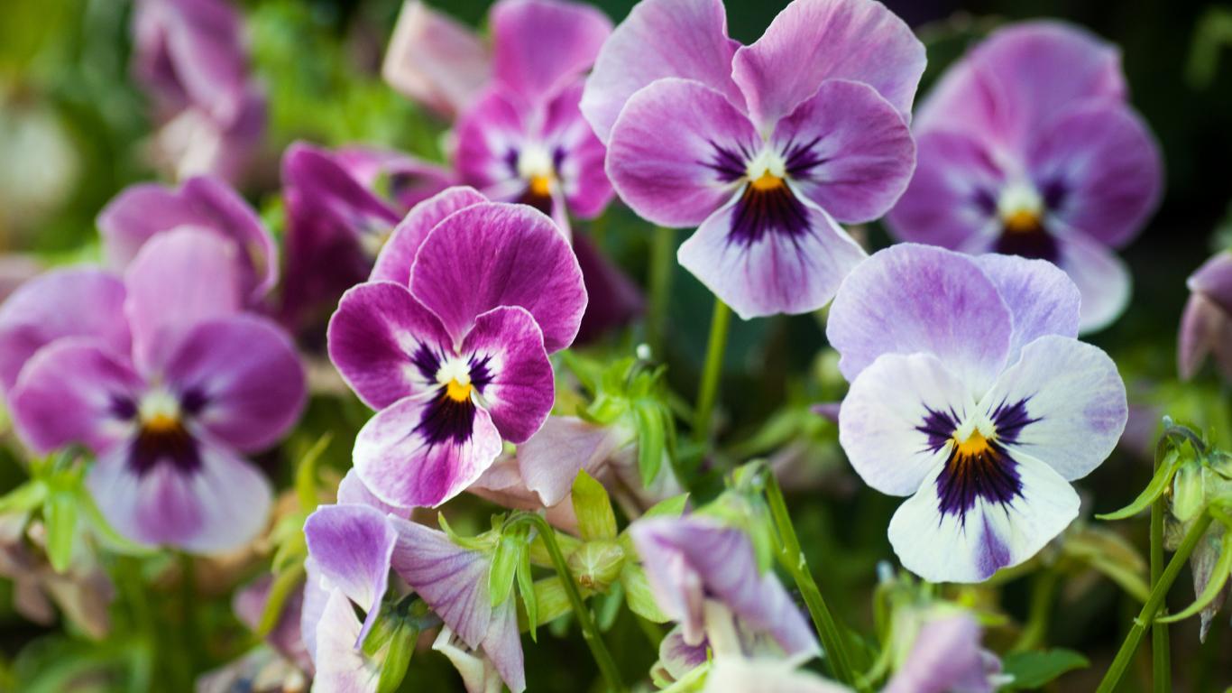 Обои Виолы (фиалки, анютины глазки) на лужайке