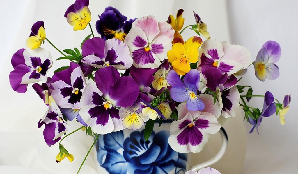 Обои Букет цветов виола (фиалка,анютины глазки)