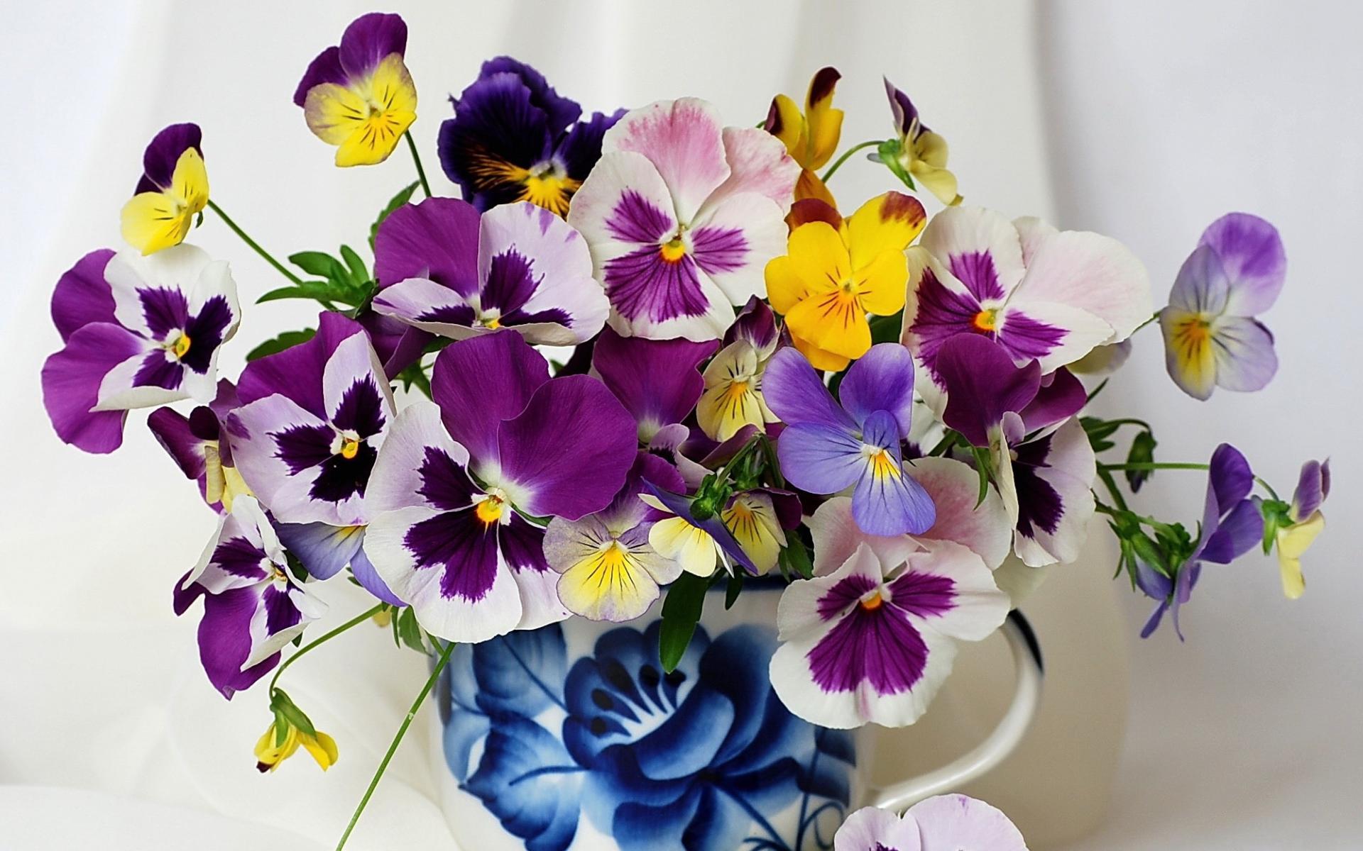 Обои Букет цветов виола (фиалка,анютины глазки)