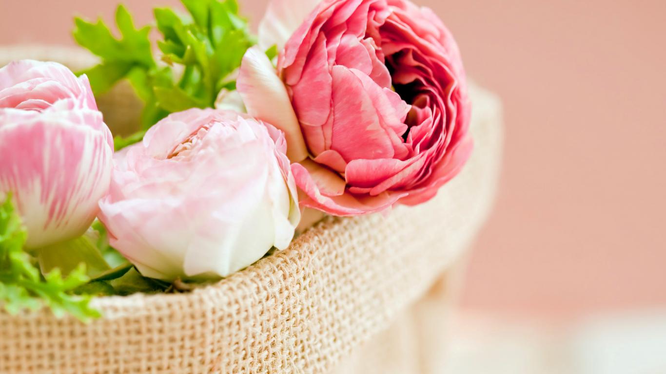 Обои Корзина красивых пионов