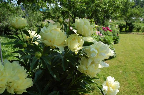 Обои В саду красивые цветы пионы