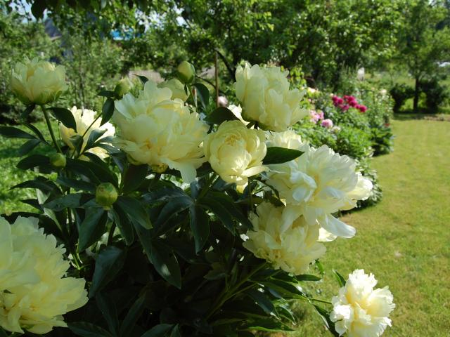 Обои В саду красивые цветы пионы
