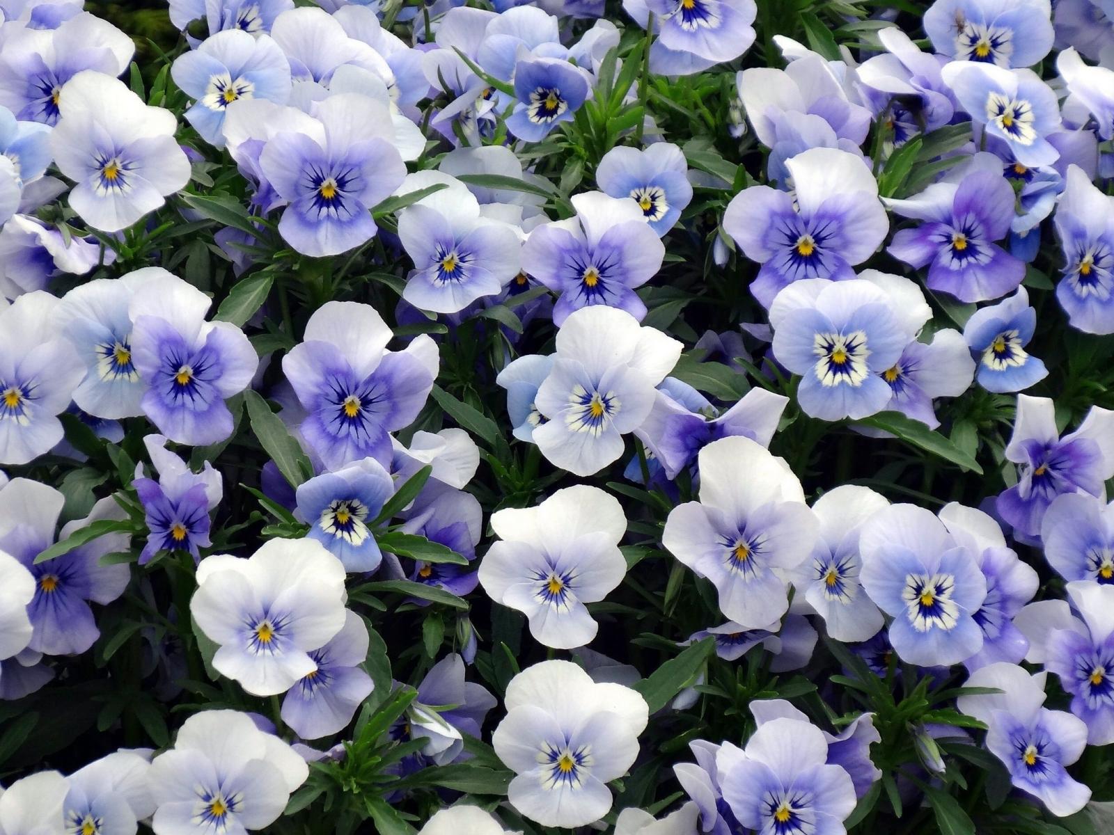 Обои Красивый букет бело-голубых цветов анютины глазки