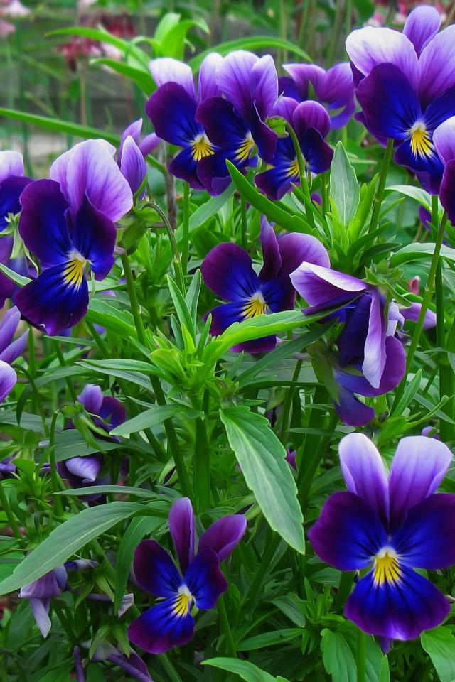 Обои В лесу весенние цветы анютины глазки