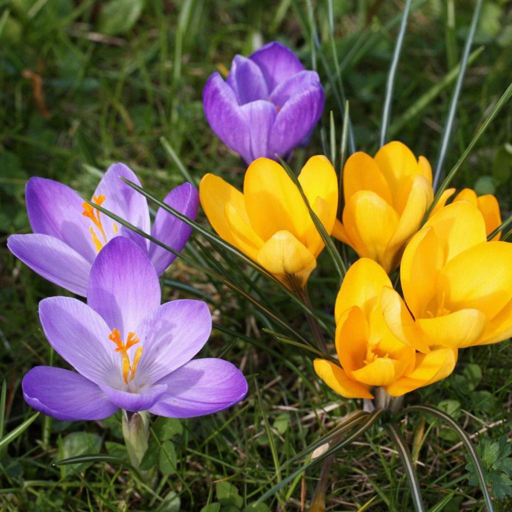 Обои Цветы крокусы на газоне