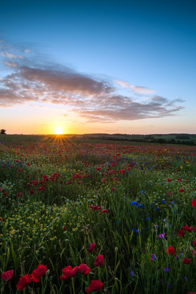 Обои Восход солнца над маковым полем