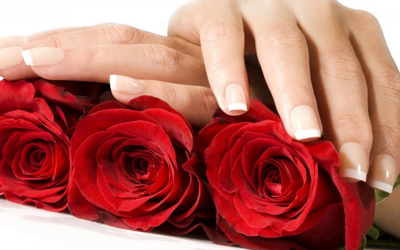 Обои Красные розы и женские руки