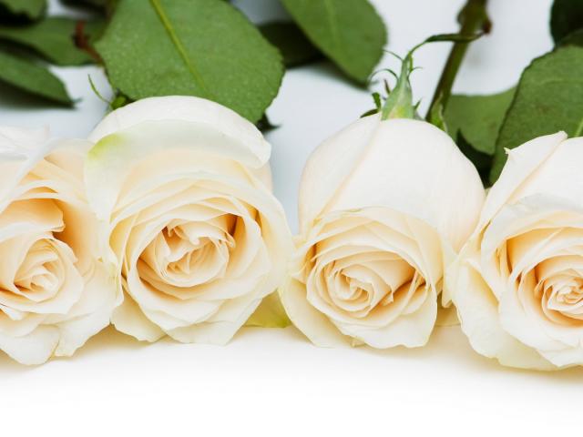 Обои Красивые белые розы на белом столе