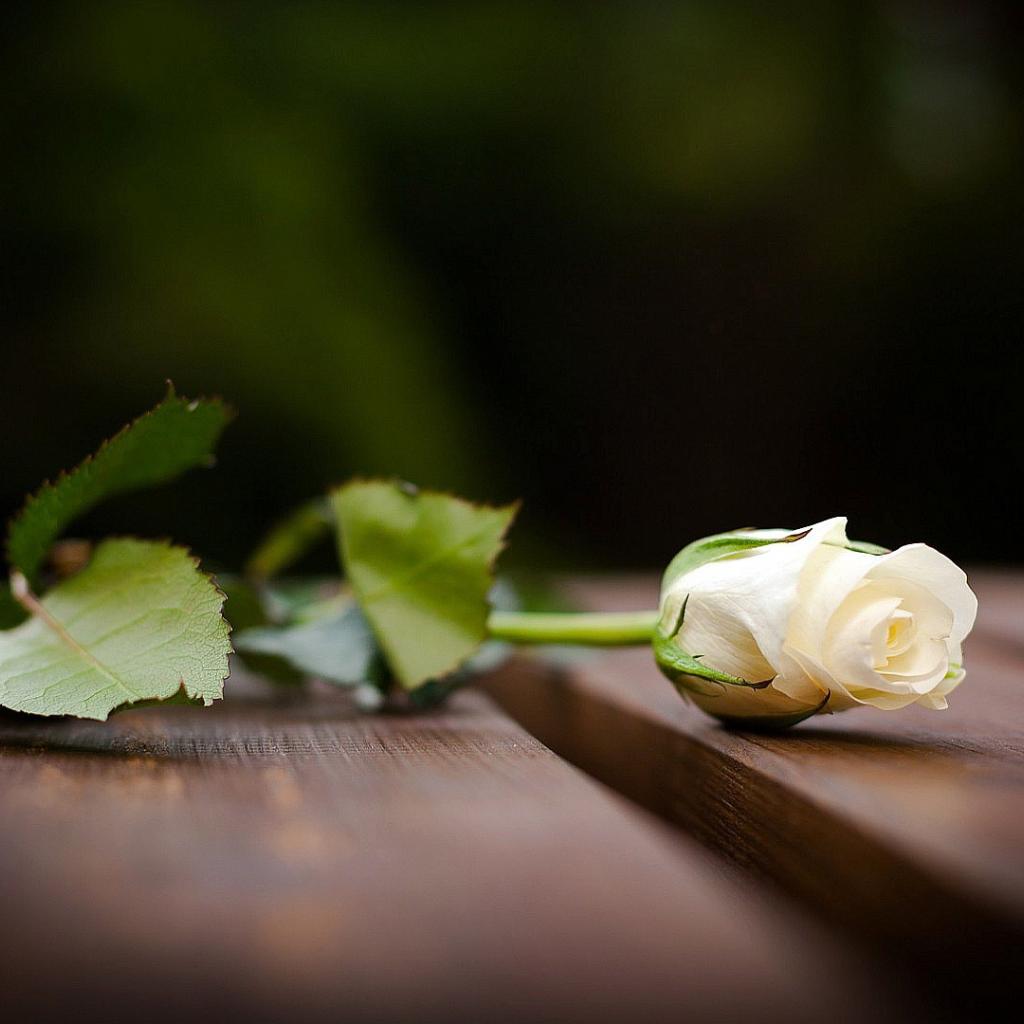 Обои Красивая белая роза на скамейке