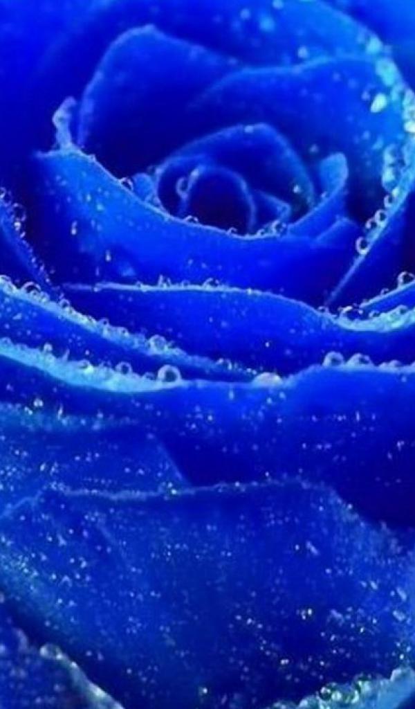 Обои Синяя роза покрылась росой
