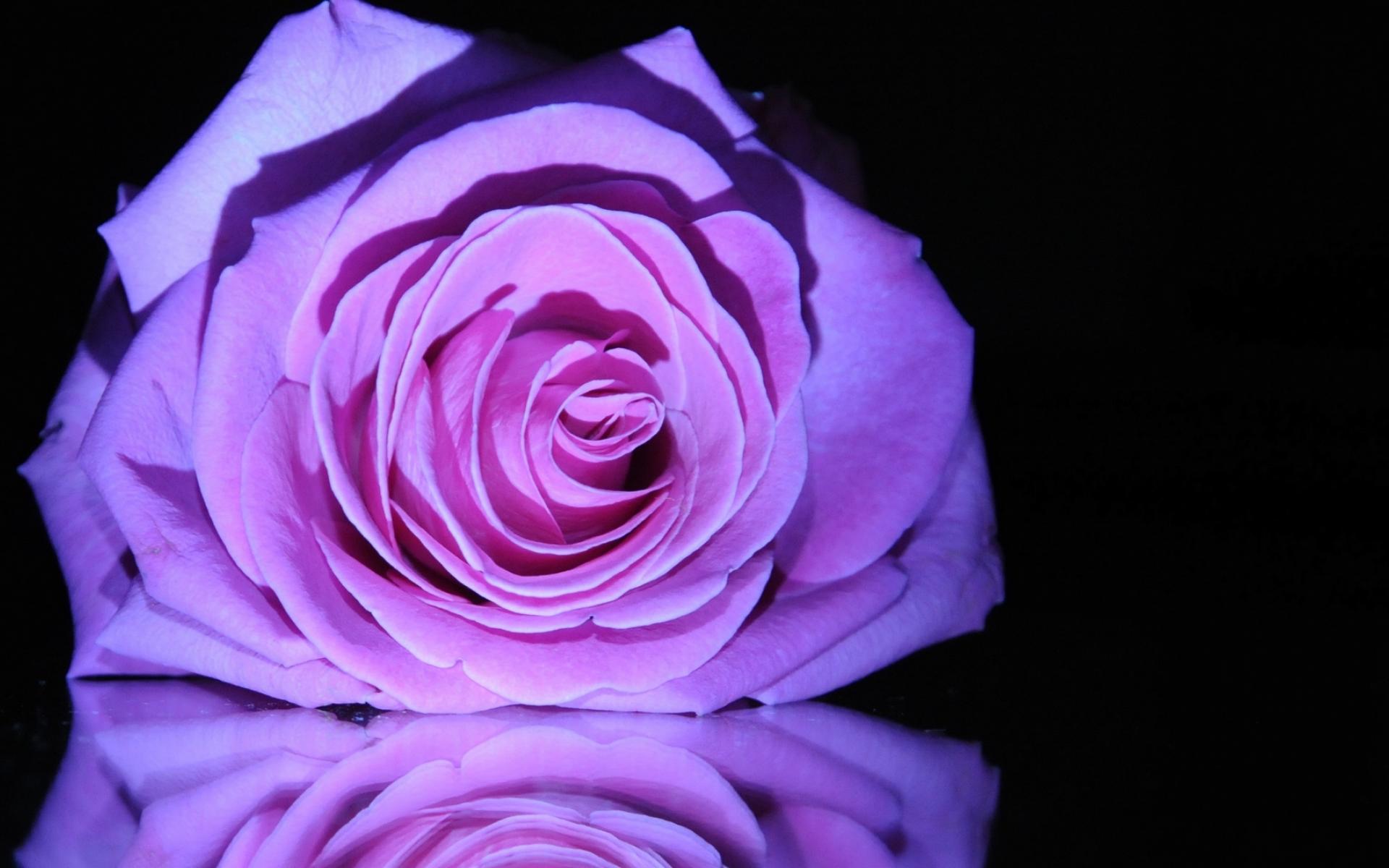 Обои Фиолетовая роза на зеркальном столе