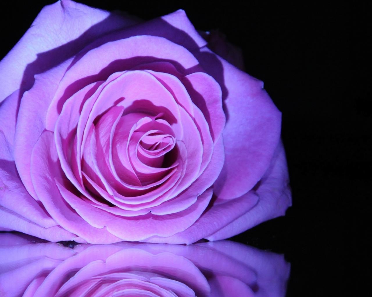 Обои Фиолетовая роза на зеркальном столе