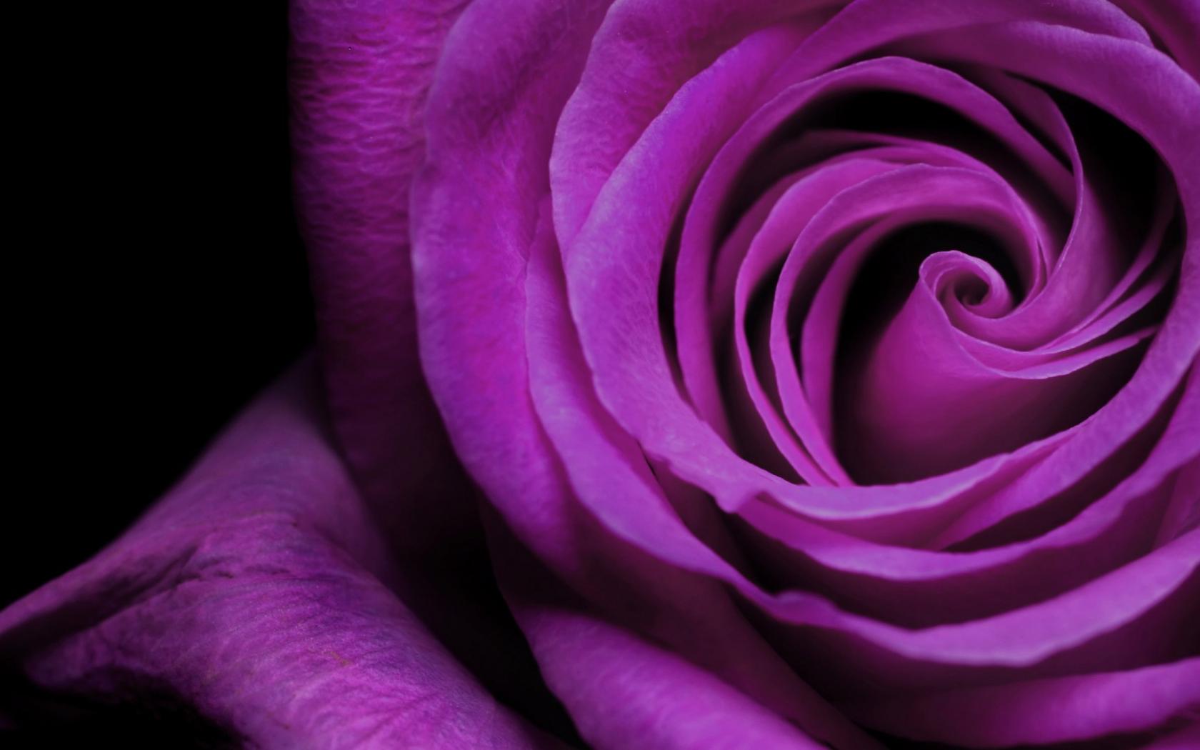 Обои Фиолетовая роза крупным планом на чёрном фоне
