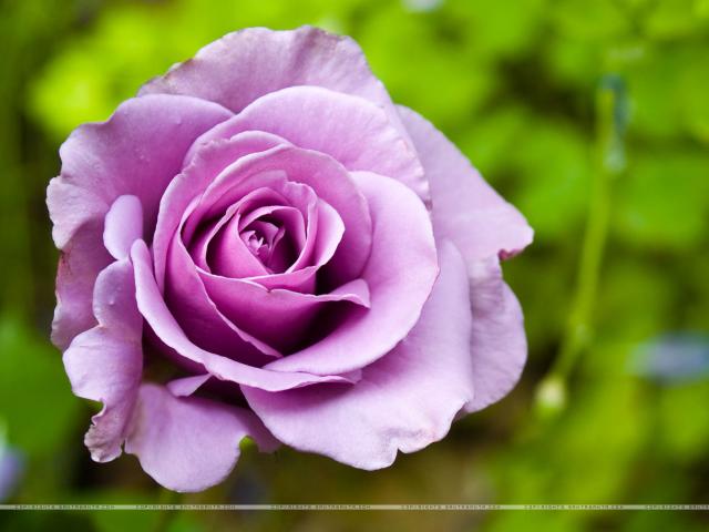 Обои Фиолетовая роза в клумбе на фоне зелени