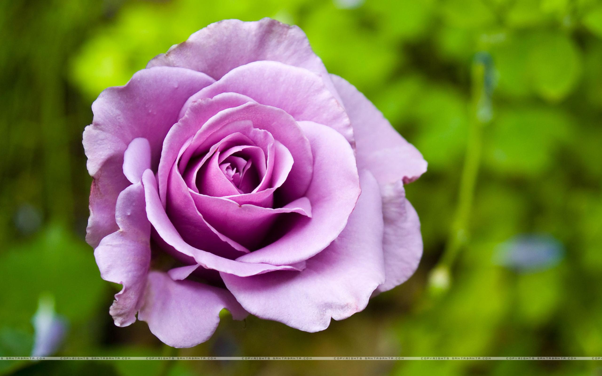 Обои Фиолетовая роза в клумбе на фоне зелени
