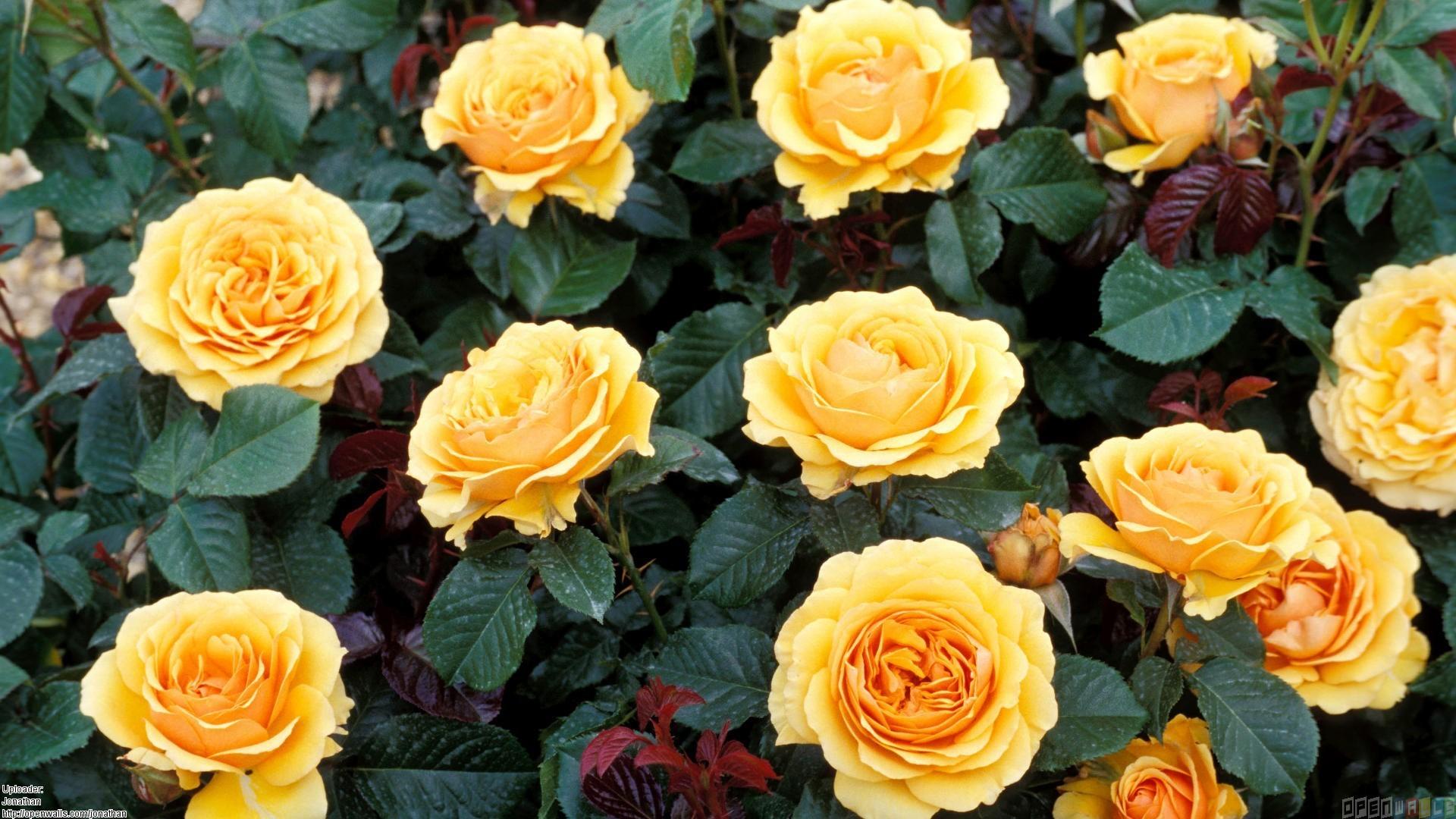 Обои Жёлтые розы на большой клумбе