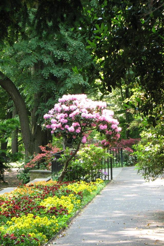 Обои Дерево с розовыми цветами в парке