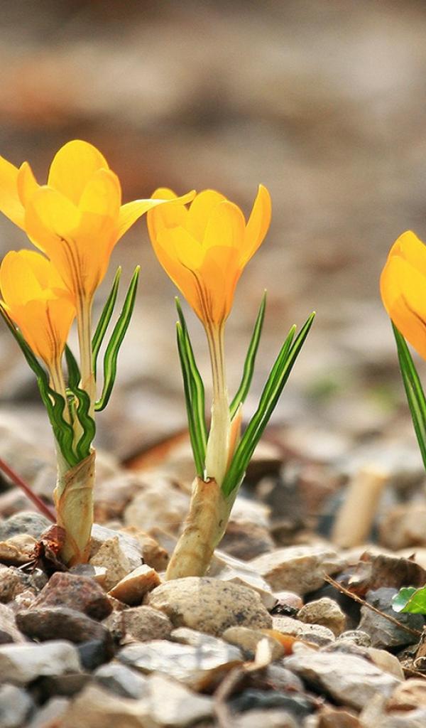 Обои Желтые крокусы расцвели