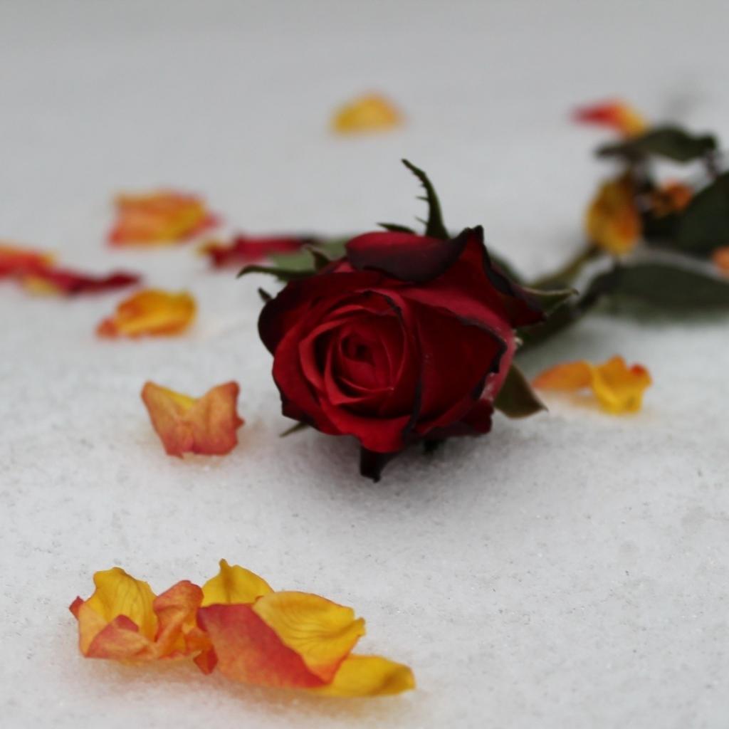 Обои Красная роза на снегу