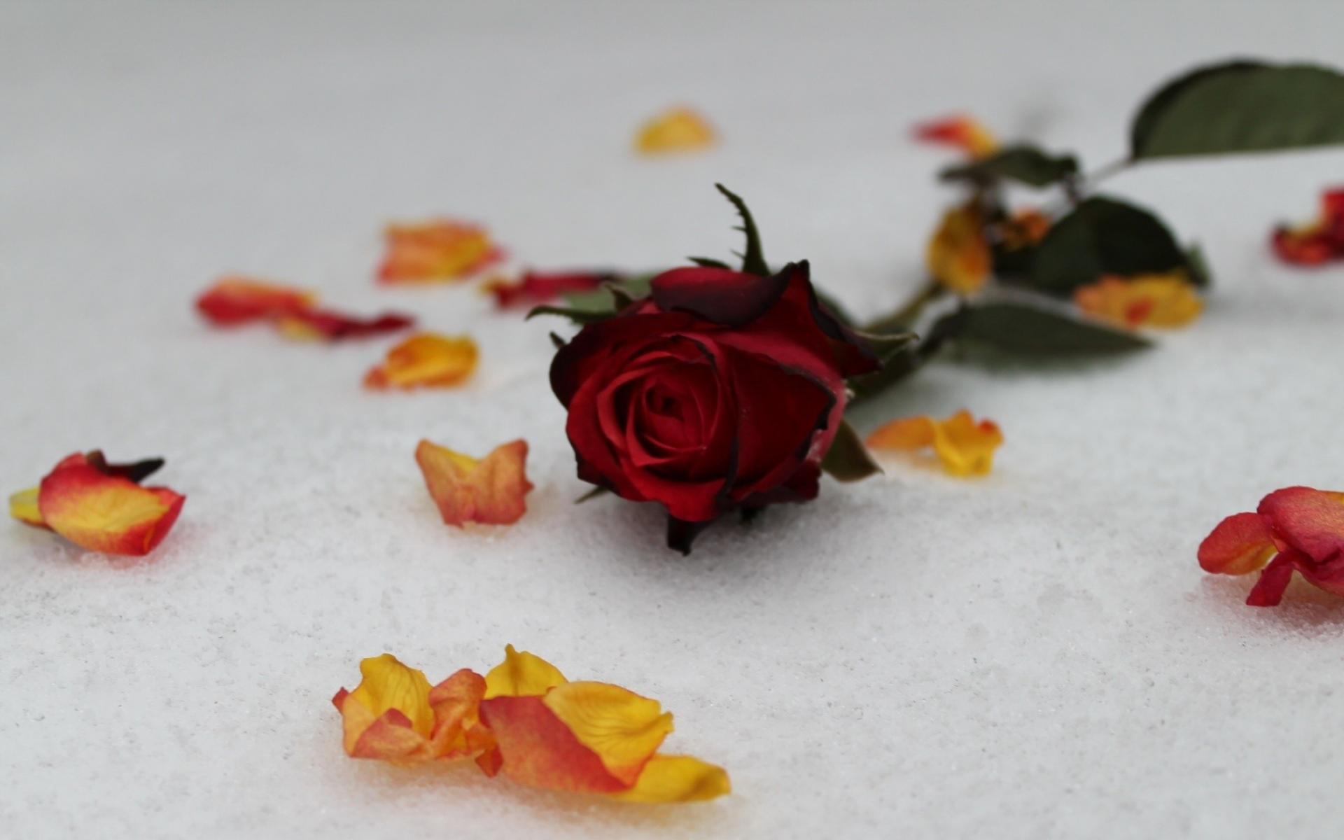 Обои Красная роза на снегу
