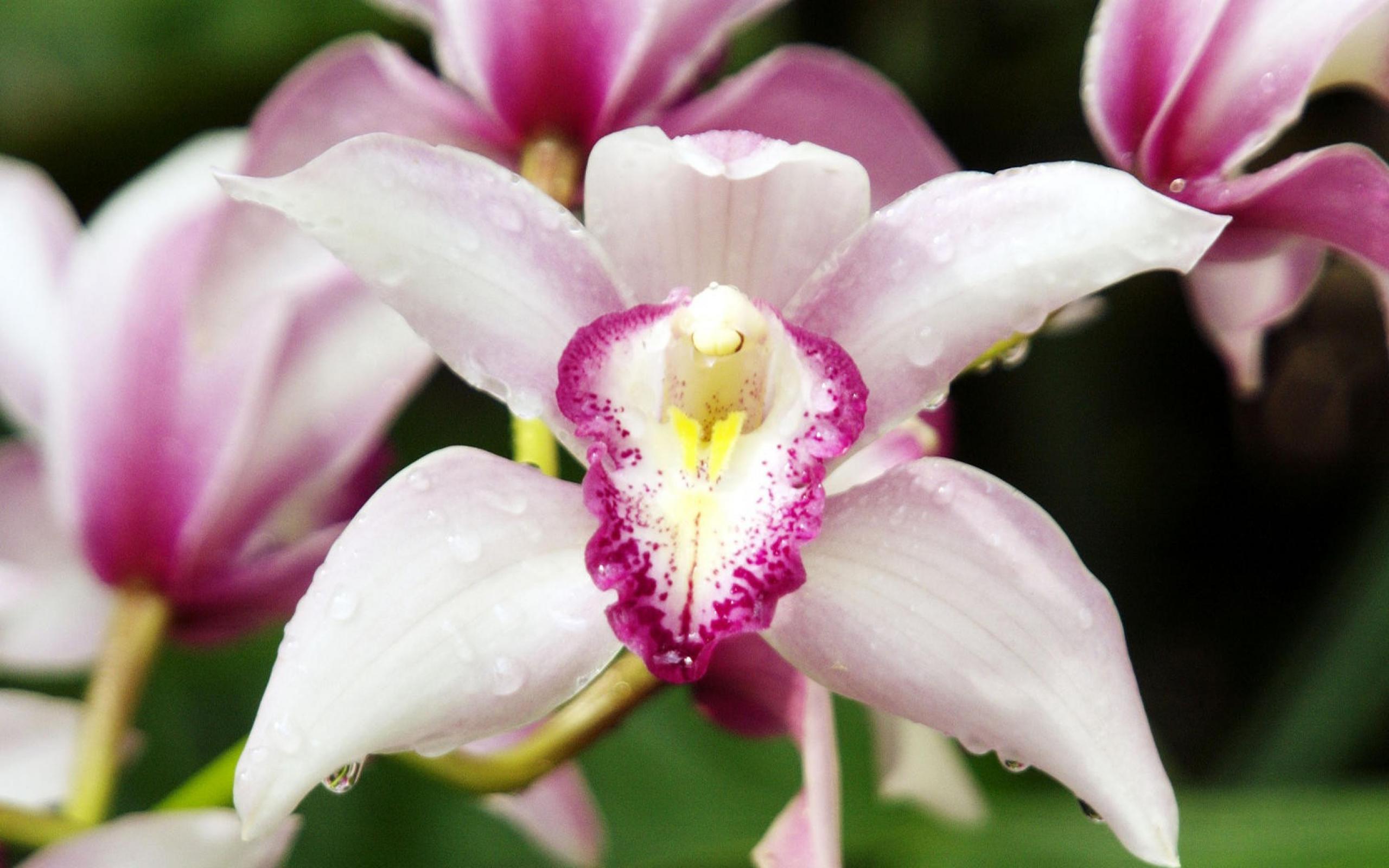 Обои Орхидеи с каплями росы
