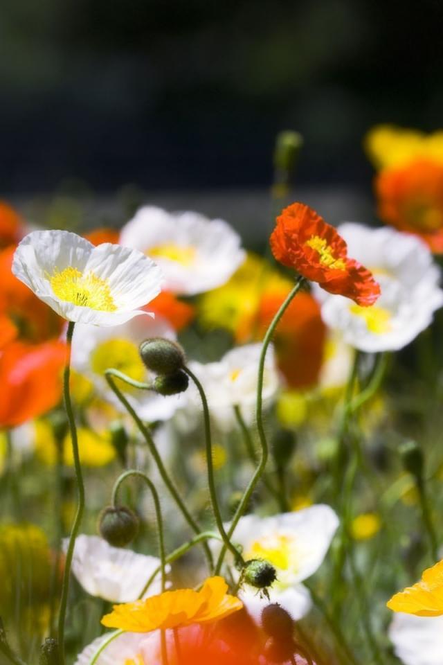 Обои Разноцветное Маковое поле
