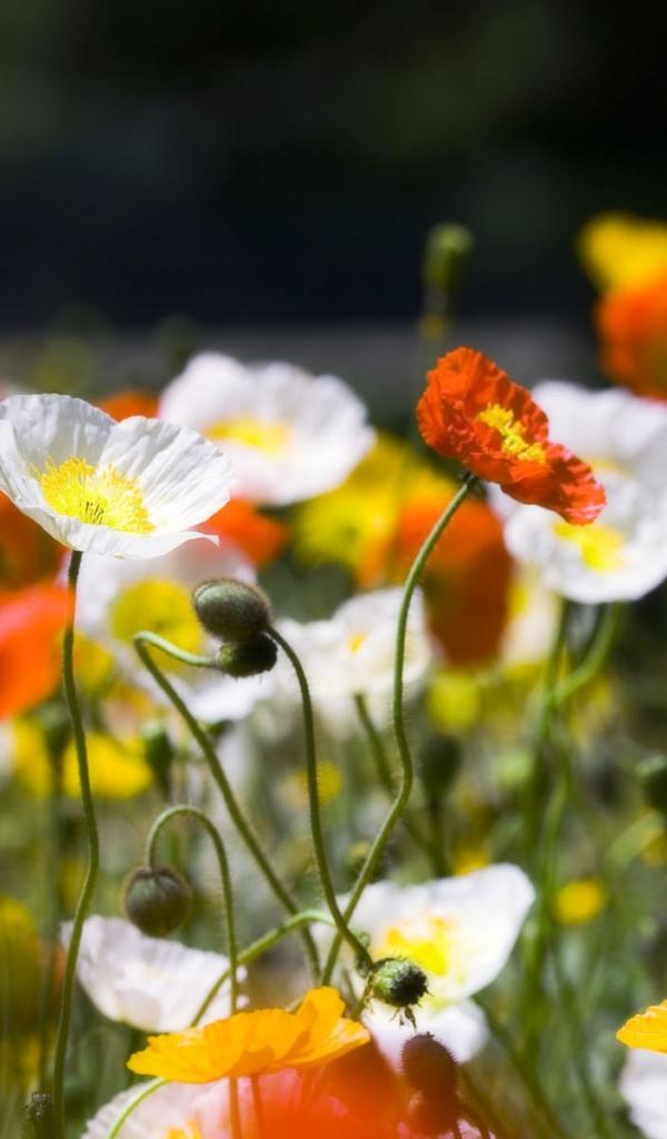 Обои Разноцветное Маковое поле