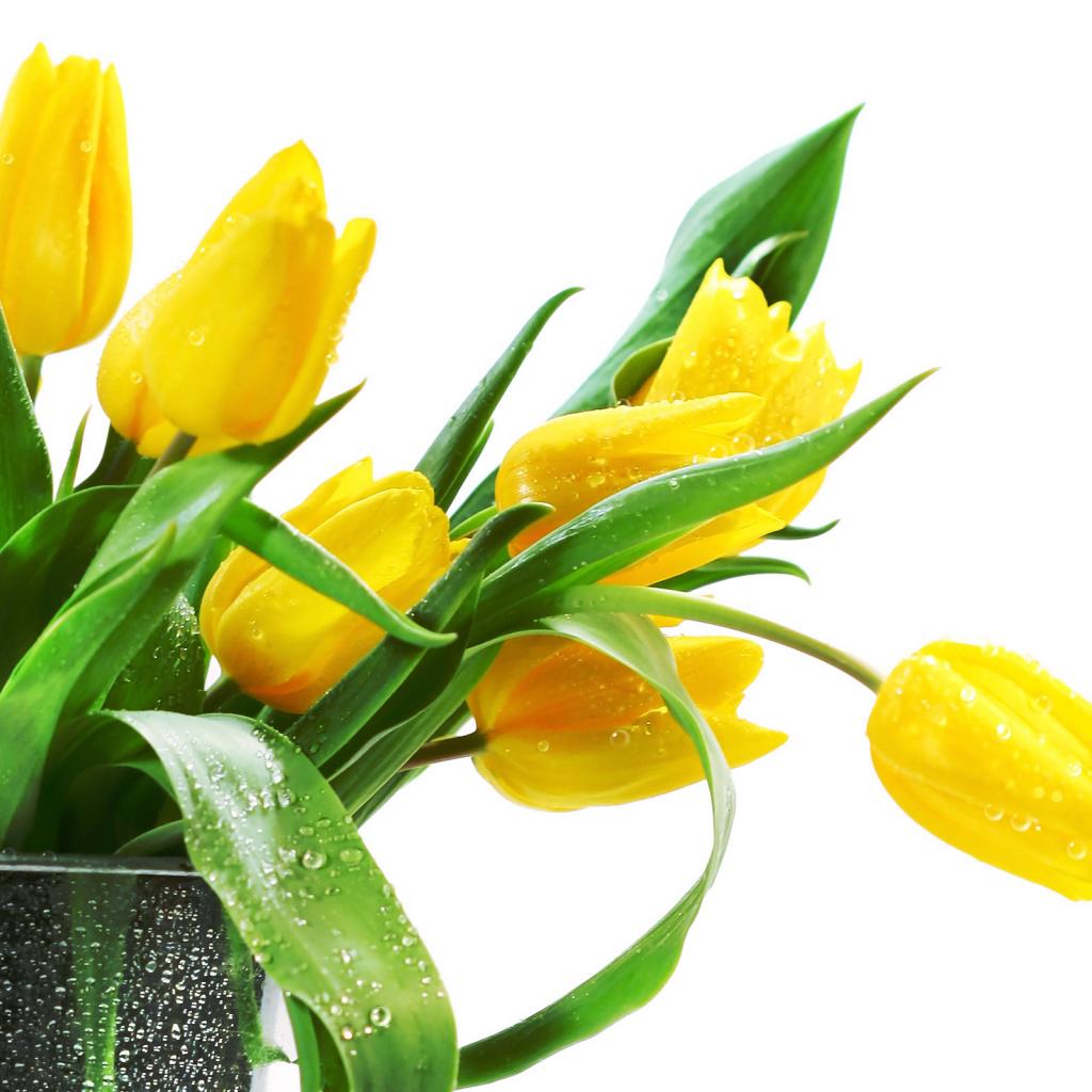 Обои Желтые тюльпаны в вазе