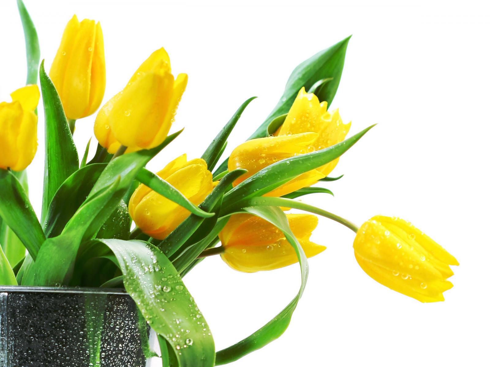 Обои Желтые тюльпаны в вазе