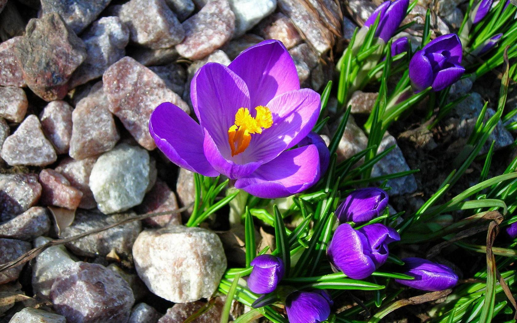 Обои Крокусы на камнях